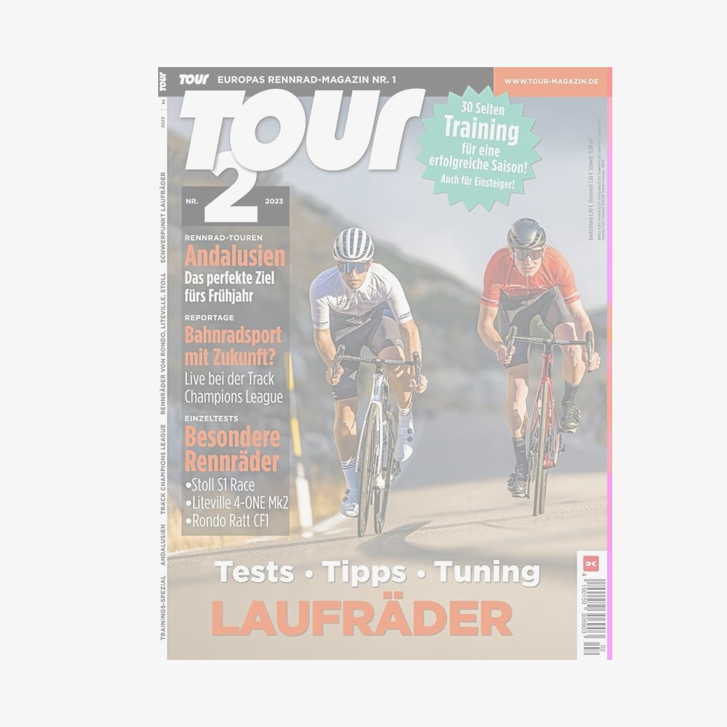 Tour-MagazinEn la revista número 2/2023, la revista de ciclismo de carretera más grande de Europa probó nuestros aros RD-Ultimate. Su resultado: "Nuevo récord de peso: [...] los aros extravagantes de ONE-K eclipsan todo lo anteriormente visto: con un peso de juego de solo 947 gramos, 300 gramos menos que los modelos de carbono completo, son los nuevos reyes de la construcción ligera".