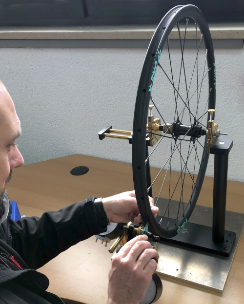 TOUR Test"Los recién llegados de Renania-Palatinado presentaron con el RD Ultimate, desde la prueba en TOUR 2/22, el juego de ruedas más ligero que conocemos actualmente: 950 gramos, para ambas ruedas. El RD-S está construido de la misma manera, con una llanta más robusta, 183 gramos más pesada, pero significativamente más rígida lateralmente y aprobada para soportar hasta 120 kilogramos de peso del ciclista. Según el fabricante, las ventajas del notable entramado de radios son una conexión adecuada a la carga, ya que las fibras no se pegan, sino que se colocan en bucles."